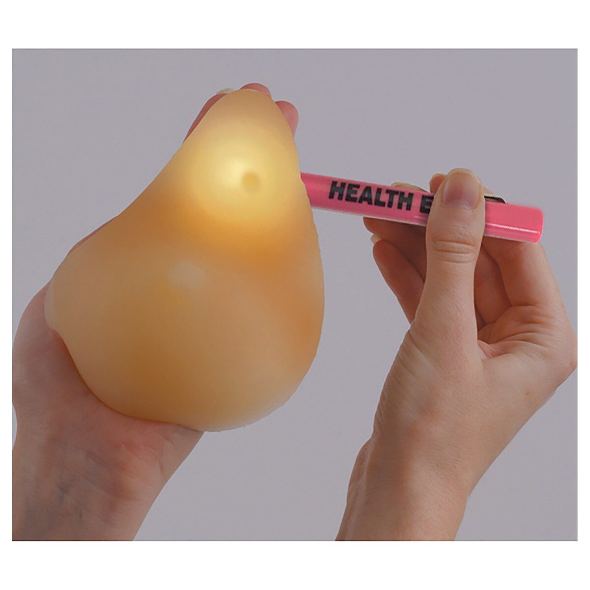 This comprehensive kit features one beige and one brown Standard BSE Model. Models are made of soft, lifelike, BIOLIKE™ synthetic tissue. Each model features palpable lumps that teach fingers how to locate potential abnormalities, as well as non-palpable lumps that can be seen with a penlight only, underscoring the importance of mammography. A great tool for instruction in breast self-exam and breast self-awareness programs.